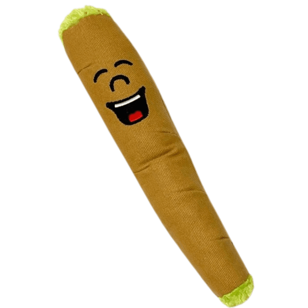 FUNNY: B the Blunt was designed to be a funny dog toy, great for light play or as a photo prop. He is also a funny photo prop for adults! B's back like a giant 10" blunt.