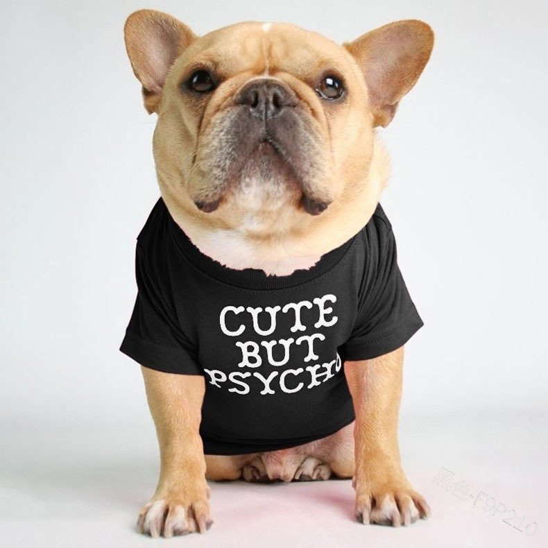 dog clothes starling English short bulldog pet clothing round collar T-shirt Teddy than panda dog clothing - black - S