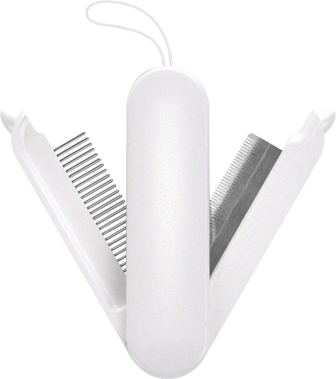 Pet Life 'JOYNE' Multi-Functional 2-in-1 Swivel Travel Grooming Comb and Deshedder - White