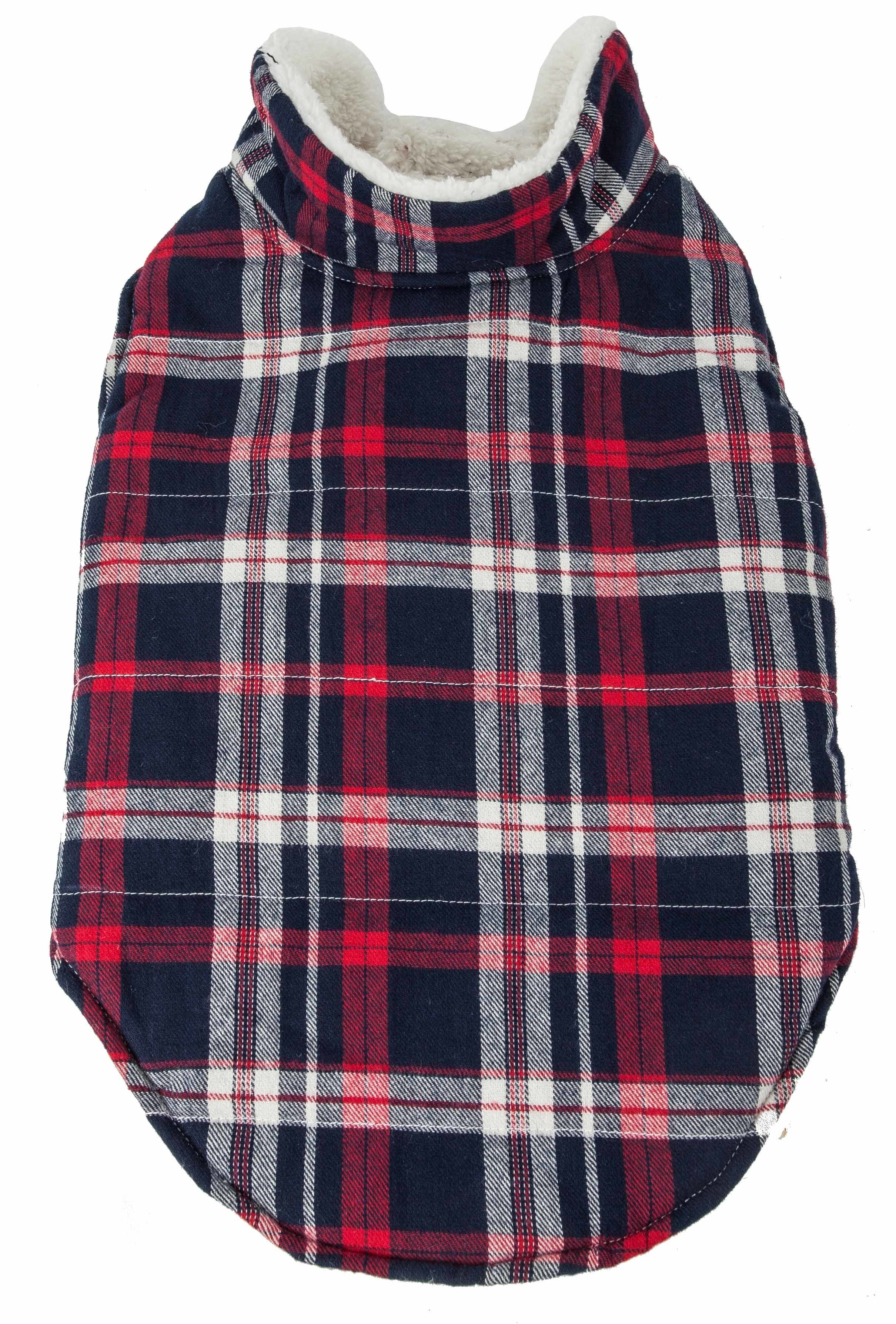 The Pet Life 'Puddler' Classical Plaided Insulated Dog Coat features a Classical Gingham Plaided Pattern composed of 100% Cotton along the back that extends into the collar with reversible Ultra-Soft Sherpa that gently hugs the body and inner lined with High-Grade Plush Polyfill for added warmth and comfortability. Features Tough-Grade Velcro Belly Enclosures for convenient on and off access and a leash slit below the neck line. Available in Multiple Sizes.