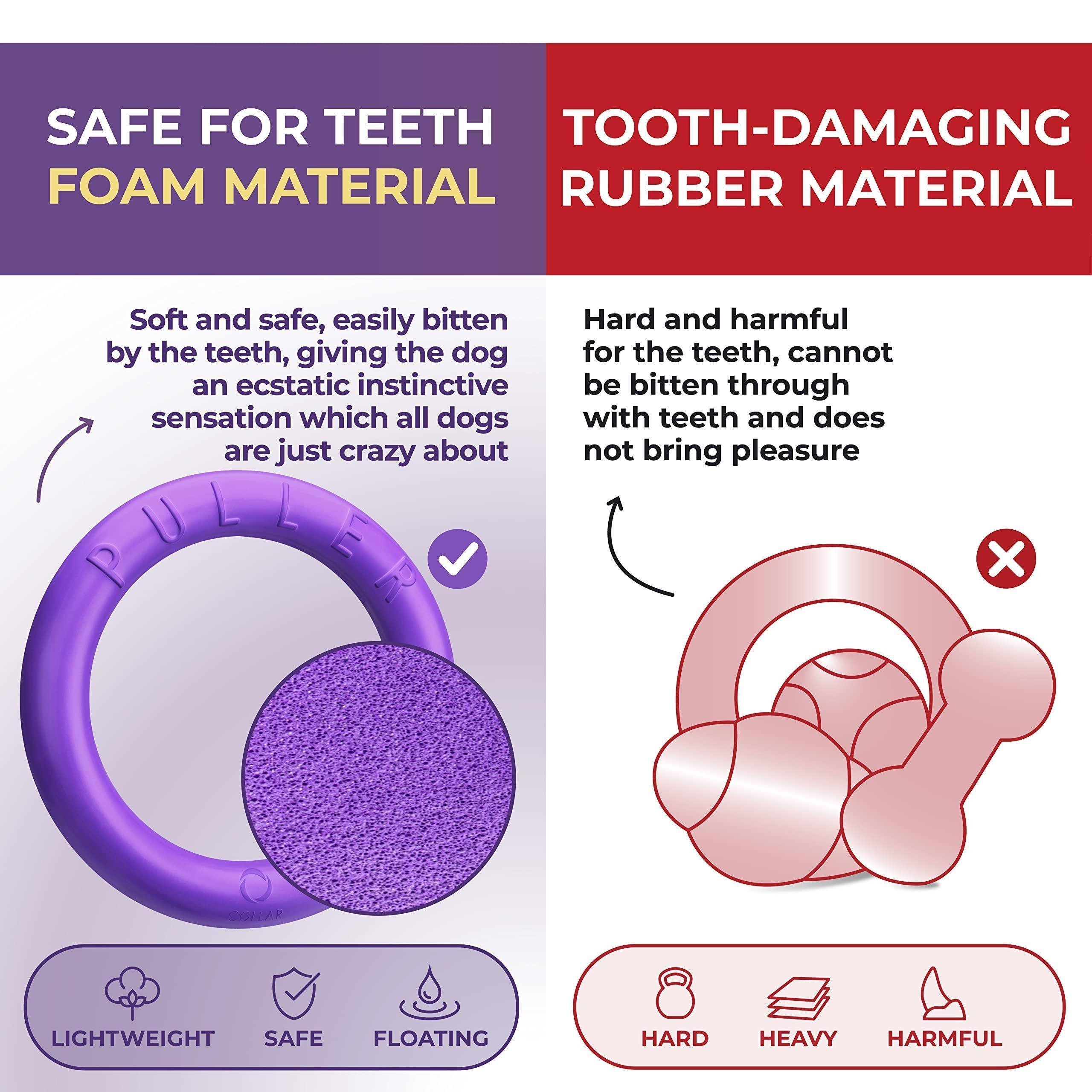 1.multifunctional dog toy - puller is more than just a dog ring toy. use it to fetch, tug of war and water games. it is a great alternative to dog balls, floating dog toys, frisbee for dogs.